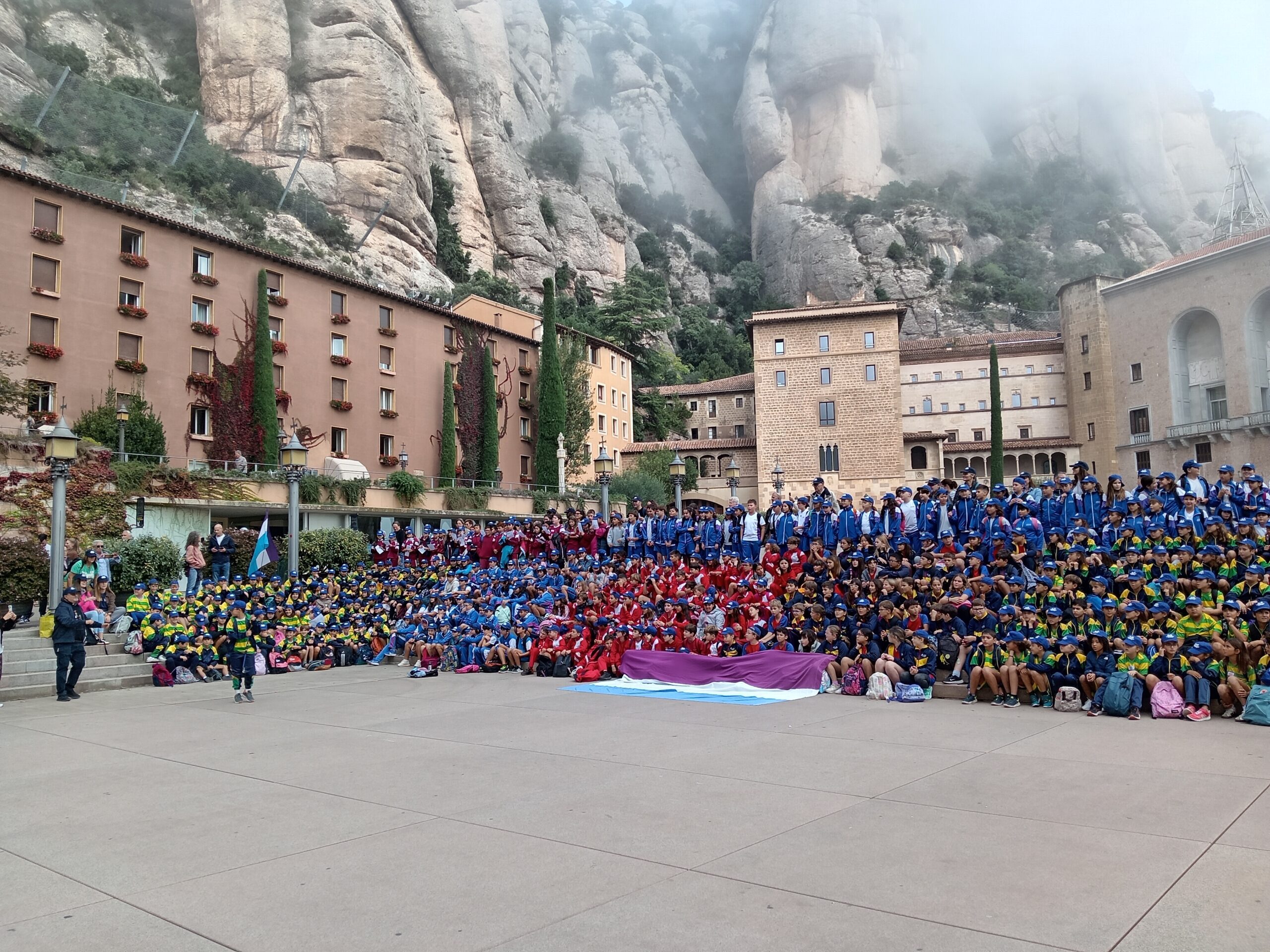 Unos 550 alumnos de 5º de Primaria y más de 120 alumnos de secundaria, participantes en grupos de catequesis y de voluntariado, de las escuelas Manyanet de España, participaron en una jornada conmemorativa del Milenario de la Abadía de Montserrat.